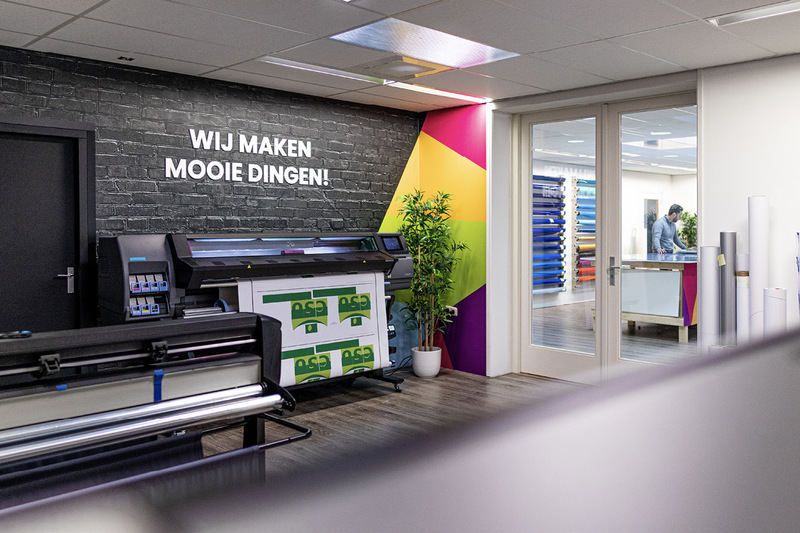 Het begon allemaal met de opleiding in Ede. “Ik zocht een stageplek, maar die waren zeldzaam. Ik kon aan de slag bij het beletteringsbedrijf van JP in Duiven en dat vond ik een leuke tak van sport. Ik had me tijdens mijn studie al ingeschreven bij de KVK. Dan heb ik dat al geregeld voor als ik klaar ben. Na mijn studie bleek al snel dat er meer nodig was om een bedrijf te starten. Ik besloot mijn plannen even in de koelkast te zetten en eerst ervaring op te gaan doen. Ik vond een leuke baan bij een reclamebureau in Zelhem, maar het ondernemersbloed bleef stromen. Ik kwam in contact met een opdrachtgever voor wie ik als freelancer aan de slag kon (restyling van de supermarkten van de C1000- naar de Jumbo-formule). Dat was een gewaagde stap, er was een economische crisis aan de gang, maar ik zette toch door en nam in een onstuimige tijd ontslag. Van 2011 tot 2016 was ik als freelancer aan de slag en langzaam maar zeker, kwamen er meer eigen projecten. In 2016 trok ik opnieuw de stoute schoenen aan. Ik besloot te stoppen met freelancen en alleen nog voor eigen klanten te werken. Ik huurde 180 m2 werkruimte, ik had een plotter en een computer, maar eigenlijk nog niet voldoende klanten. Dat was pittig, ik ging bouwen, vanuit de gedachte dat ik mooi werk wilde maken voor fijne klanten. In de praktijk bleek dat ik tien keer zo hard werkte als tijdens mijn freelancetijd, maar met meer stress en voor hetzelfde geld. Na een bewogen jaar heb ik het roer omgegooid. Het was tijd voor een paar weloverwogen keuzes. Ik besloot kritisch te kijken naar mijn kernwaarden en visie, voor wie ben ik er? Ik had inmiddels al een breed dienstenpakket, in feite deed ik al veel op het gebied van sign & print en dat terrein heb ik gestaag uitgebouwd. Dat loopt tegenwoordig van wagenparkbelettering, lichtreclames, interieurprojecten, carwrapping tot bijvoorbeeld bewegwijzering en gevelreclames.”